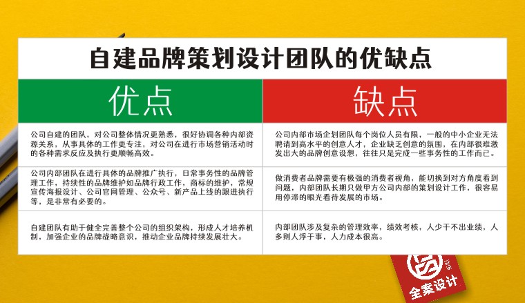 缺點1:公司內部市場企劃團隊每個崗位人員有限,一般的中小企業無法聘請到高水平的創意人才,企業缺乏創意的氛圍,在內部很難激發出大的品牌創意設想,往往只是完成一些事務性的工作而已。
