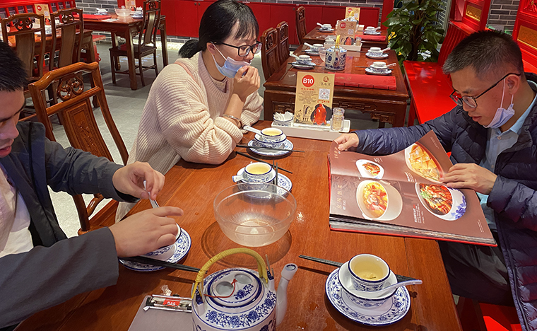 京味張的客群主要為家庭聚會、商務接待,餐廳的座位分布以包間、四人散座為主。家具使用傳統老北京的紫檀木中式圓桌,中式欄桿卡座,具有濃烈的中式復古氛圍。