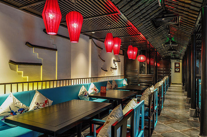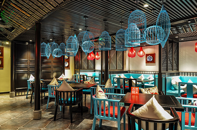 有了識別度高的平面形象,我們更要有強烈的有鮮明的主題風格,或清新、或時尚歡快的空間裝飾,所以在空間設計上,我們充分依托中式風和蘇繡元素。