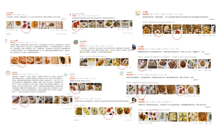我們進一步羅列總結了蘩樓現有門店的客戶點評,并且通過對蘩樓寶安南路首家店的分析,我們發現顧客點的最多且在點評網站上分享最多的十款產品:蝦餃、叉燒包、紅米腸、油條、四色蝦餃、藍莓菊花酥、天鵝酥、草莓菓、乳鴿、艇仔粥。