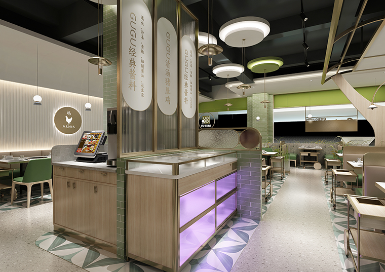廣式火鍋因其健康養(yǎng)生、清淡滋補營養(yǎng)好而深受各地消費者的喜愛和追捧。除了傳統(tǒng)的潮汕鮮切牛肉火鍋,椰子雞、豬肚雞也是目前廣式火鍋中非常熱門的餐飲品類。深圳椰子雞火鍋連鎖品牌——江南春天椰子雞餐廳就非常看好豬肚雞這一品類,該連鎖餐廳旗下豬肚雞火鍋品牌——咕咕豬肚雞,將傳統(tǒng)的濃湯豬肚雞升級為清湯豬肚雞,湯底更加清淳,味道鮮香還甜美,相比傳統(tǒng)豬肚雞,養(yǎng)生滋補功效很明顯。咕咕豬肚雞餐廳在產(chǎn)品上還加入了粵菜經(jīng)典細分品類——啫啫煲,這也是粵菜中非常熱門的品類。與豬肚雞火鍋搭配,豐富了產(chǎn)品線,市場競爭優(yōu)勢比較顯著。此次咕咕豬肚雞啫啫煲餐廳經(jīng)過認(rèn)真考察分析比對后委托品深餐飲設(shè)計負(fù)責(zé)咕咕豬肚雞啫啫煲大浪商業(yè)中心后浪新天地店的空間裝飾設(shè)計。