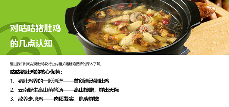 而我們的咕咕豬肚雞是采用野山菌清湯熬制,菜品最大的特點就是和傳統(tǒng)奶白色濃湯不同,我們的雞湯很清透,因為使用的是云貴高原的野山菌熬制,不加任何添加劑,健康養(yǎng)生。