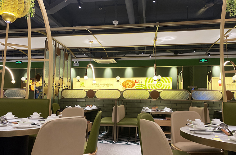 2、用裝飾材料特性表現(xiàn)豬肚雞菜品的核心特征,打造出時尚清新,通透舒適的空間感受。