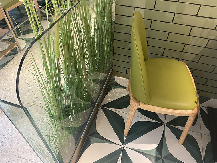 為了營造自然,清新,通透的空間感受,體現(xiàn)咕咕豬肚雞清湯養(yǎng)生特點,品深餐飲裝飾設(shè)計團隊使用了淺木色半包鳥籠造型,隔斷中遍種仿真綠植,墻面以淺白色手工磚突出了發(fā)光不銹鋼廣告畫面的內(nèi)容,簡約又具有鮮明的廣告效果,很好地將咕咕豬肚雞的品牌文化、品牌形象及品牌內(nèi)容在空間中展現(xiàn)出來了。