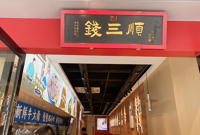 2、門店入門口上方懸掛錢三順匾額,匾額是中國文化中非常鮮明的符號。懸掛匾額讓人聯系歷史悠久,品牌是老字號,是傳承多年的。